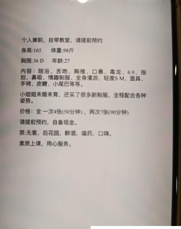 上加的小姐姐,服务是真的好,400的价格能做这么多服务是全长沙天花板级别的性价比了。很专业用心,一点都不敷衍,课表上的都有,有什么要求可以提出来小姐姐能做的都会满足要求,舔菊花是用舌头直接伸进去舔这个巨爽时间也久,舔蛋蛋的时候舌头超级灵活。胸大坚挺,没生过孩子的,屁股又大又圆,69无异味,后入情不自禁双手抓住老师的翘臀,用胯部猛烈撞击,里面又热又紧加上会收缩,在一阵阵淫荡的叫声中一泻千里,老师全程不催,配合度极高,到钟才依依不舍的离开。强烈推荐各位兄弟,现在经济不景气,钱不好挣,找这个老师性价比极高